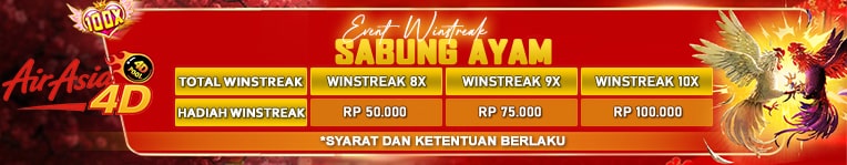 1. Harus Mendapatkan Kemenangan Beruntun 8X/9X/10X 2. Tidak Berlaku Jika Ada Taruhan yang Draw/BDD 3. Jika Sudah Mendapatkan Kemenangan Beruntun, Wajib Info Ke Admin Melalui WhatsApp Atau LiveChat 4. Saat melakukan claim dilarang bermain sampai Bonus di berikan oleh admin 5. Bonus Hanya Bisa Di Claim Sehari 1X Dan Harus Ditanggal Yang Sama. 6. Maksimal Bonus Yang diberikan adalah Rp 100.000- 7. Bonus CLAIM WIN STREAK akan direset setiap hari setiap pukul 00.00 WIB. 8. Diwajibkan posting Screenshoot hasil CLAIM WIN STREAK di Grup Official Facebook AIRASIA4D dengan hastag : AIRASIA4D CLAIMWINSTREAK8XAIRASIA4D CLAIMWINSTREAK9XAIRASIA4D CLAIMWINSTREAK10XAIRASIA4D 9. Pihak AIRASIA4D Berhak Membatalkan Bonus Apabila Di Temukan Tindak Kecurangan Dalam Bentuk Apa Pun 10. Semua keputusan dari Management AIRASIA4D bersifat mutlak dan tidak dapat diganggu gugat. TOTAL WINSTREAK EXTRA BONUS 8X Rp 50.000 9X Rp 75.000 10X Rp 100.000